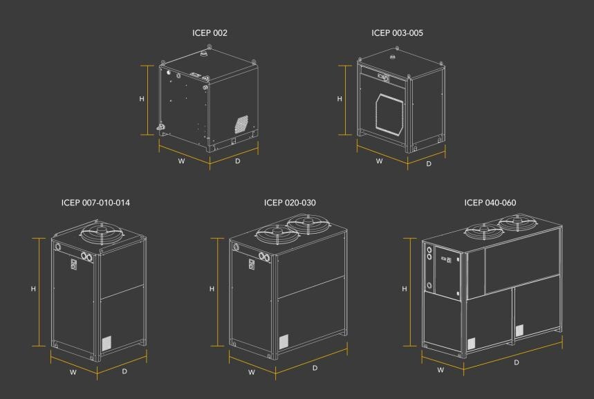 Die ICEP Reihe bietet eine vielseitige und flexible Lösung für Anwendungen, die eine Kälteleistung im Bereich von 1,7 kW bis 58,3 kW erfordern. Die wichtigsten technischen Daten der Baureihe sind wie folgt: