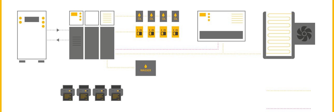 Die Wärmelast wird in der Regel abgeleitet, in dem Wasser aus Kaltwassersätzen durch die Druckwalzen oder UV-Trocknungslampen zirkuliert.