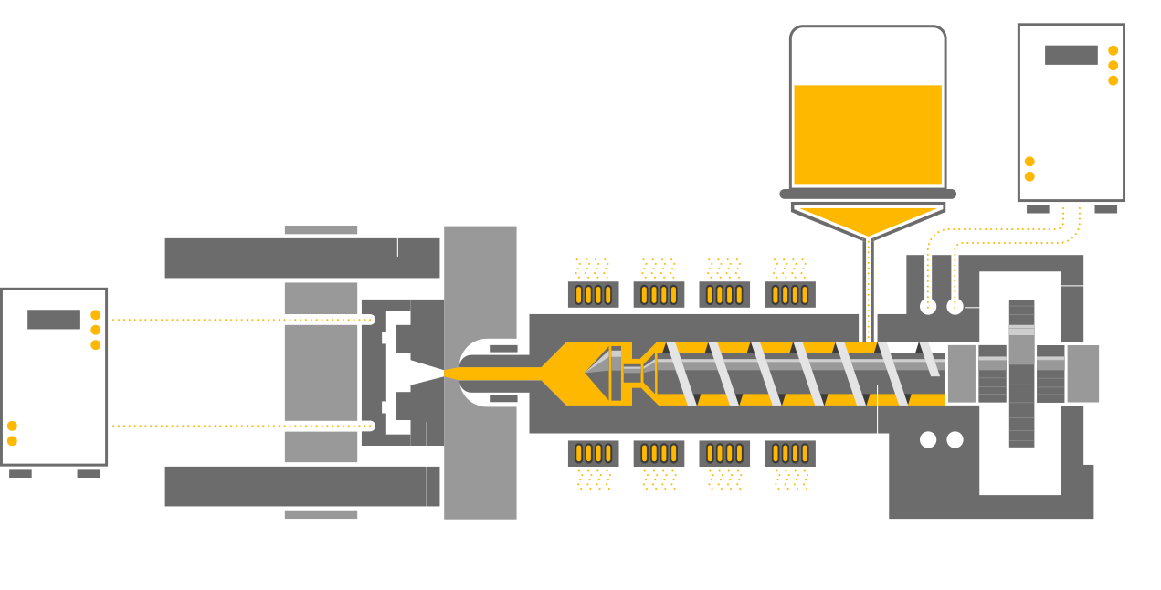 Das folgende Schema zeigt eine typische Kunststoffspritzgießmaschine: