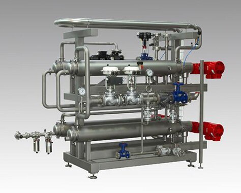 Die Größe des Systems hängt von der Chargengröße, Zykluszeit und Wassertemperatur ab. Der Wasserkreislauf des Kaltwassersatzes und der Wasserkreislauf des Prozesstrinkwassers müssen voneinander unabhängig sein, da Lebensmittelvorschriften aufgrund der Gefahr einer Verunreinigung mit Kältemittel keine direkte Kühlung von Trinkwasser in einem Kaltwassersatz erlauben. Hyperchill und Hyperchill Plus Kaltwassersätze eignen sich ideal für Trinkwassersysteme.