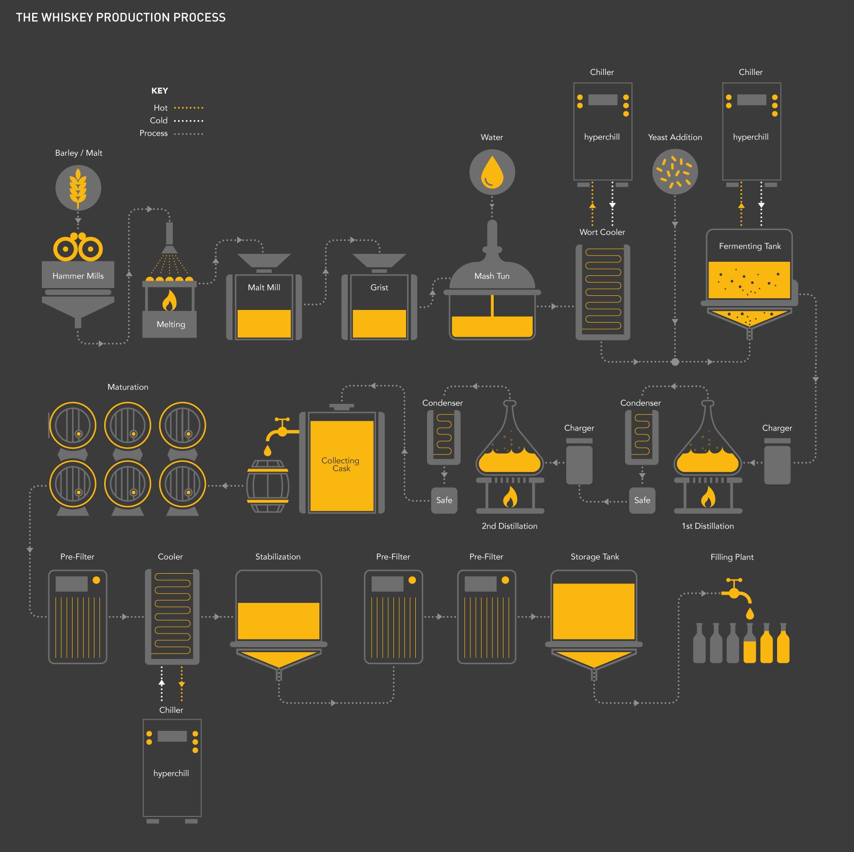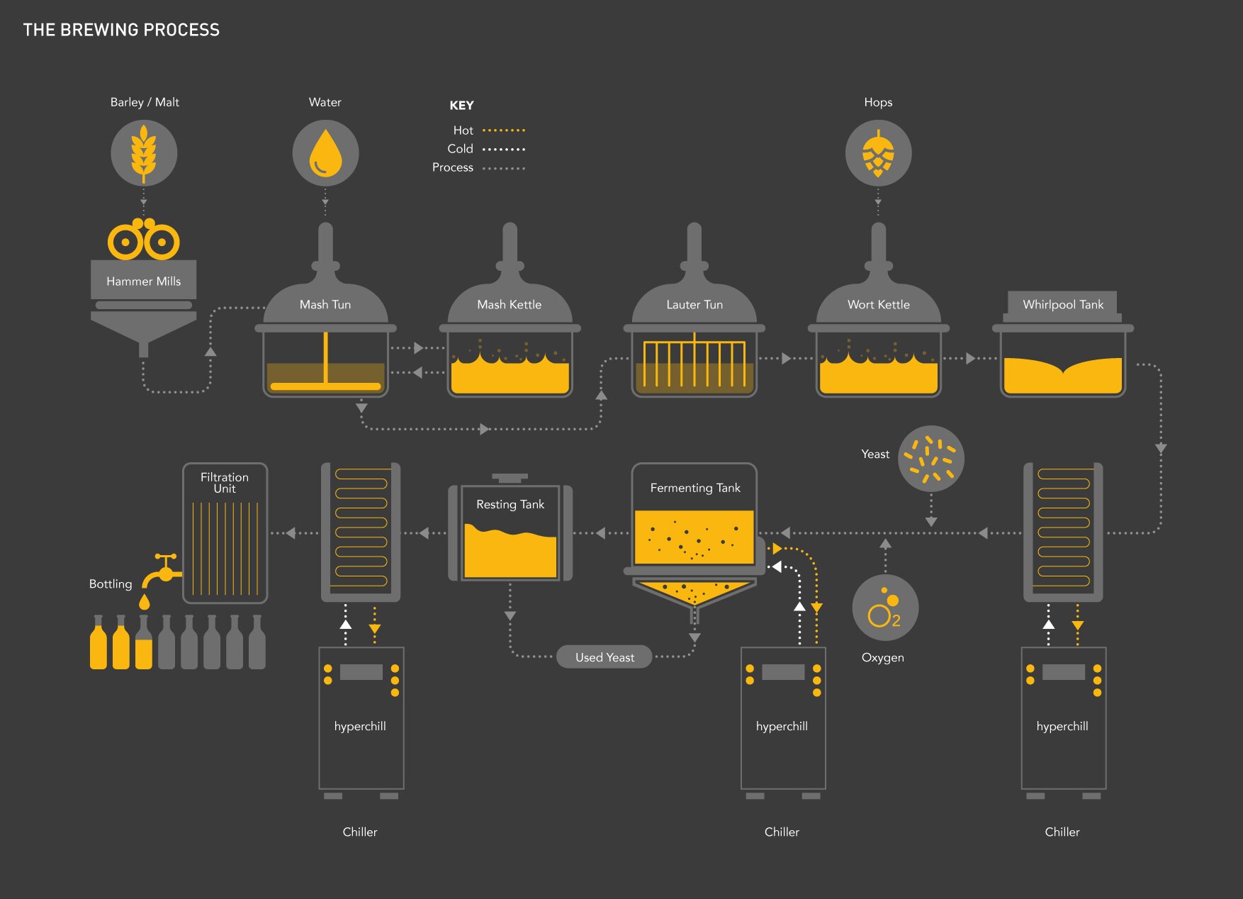 Whilst the wort is still hot it is rapidly cooled for the following reasons:
