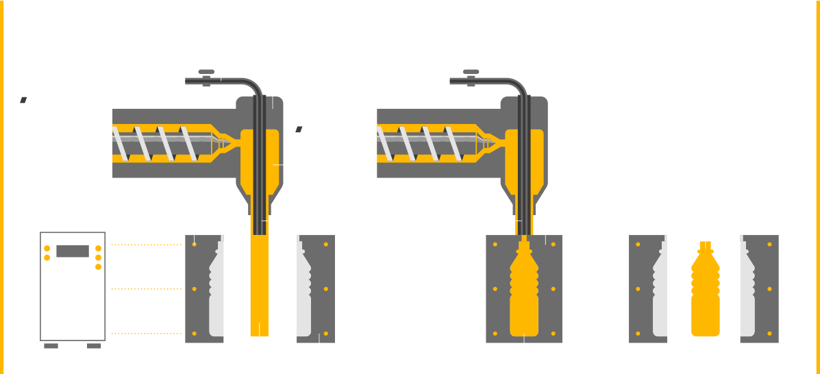 Durante il suddetto processo, la plastica fonde, e mediante un processo di estrusione o stampaggio a iniezione si crea un piccolo tubo cavo detto “parison” (o “preforma”).