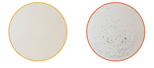The above pictures compare the contamination levels, after manufacturing, of a thermoplastic hose and a rubber hose. As seen in the pictures, the manufacturing of thermoplastic hose produces far less contamination than rubber equivalents. In many cases, the assembly of rubber hose will require cleaning of the hose prior to production use.